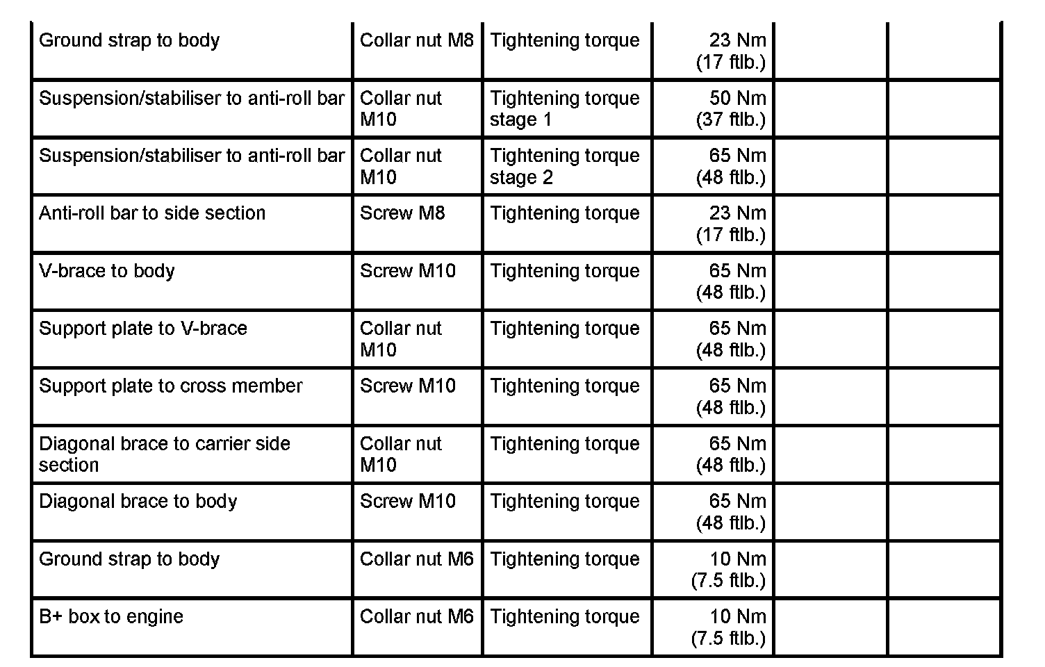 ^ Take care to maintain access to the screws for the diagonal struts in the vicinity of the rear jacking points.