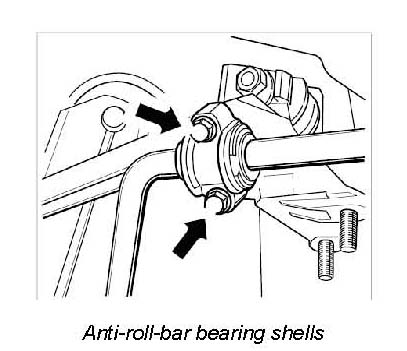 26. Unscrew screws (M8 x 40) -arrows- for anti-roll-bar bearing shells.