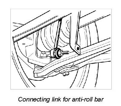 27. Unscrew nuts (M10) on suspension/anti-roll bar and disengage suspension/anti-roll bar. Counter threaded bolts with an internal Torx socket.