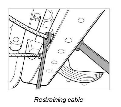 28. Unscrew nuts (M8) on restraining-cable holder. (The cable must be countered with a suitable wrench and must not be twisted!)