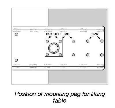 48.1. Screw special tool mounting peg 9163/2 to the support plate in the marked position -Boxster- using four M8x25 hexagon bolts.
