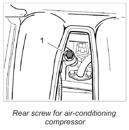 5.2. Screw in front Torx screws for air-conditioning compressor (M8 x 90) -1- and -2-.