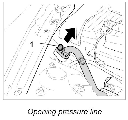 2. Unscrew fastening screw -1- for refrigerant line -C- and open the pressure line.