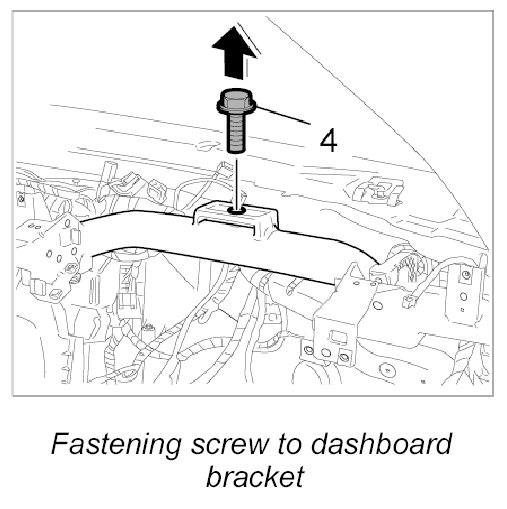 14. Secure dashboard bracket with the fastening screw -4-. Tightening torque: 9.7 Nm (7.0 ftlb.)