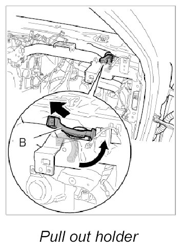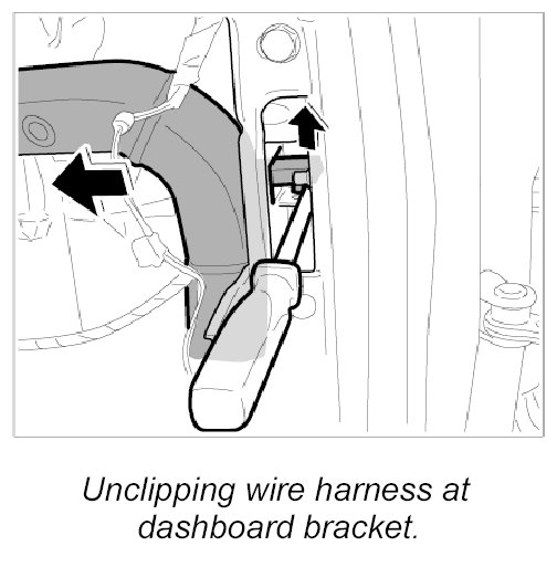 8. Unclip holder for electric harness with a screwdriver from right side of dashboard bracket.