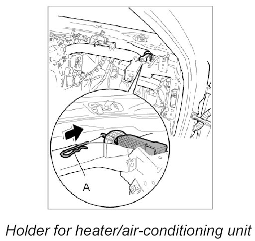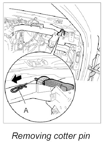 10. Pull out cotter pin -A- for holder of the heater/air-conditioning unit.