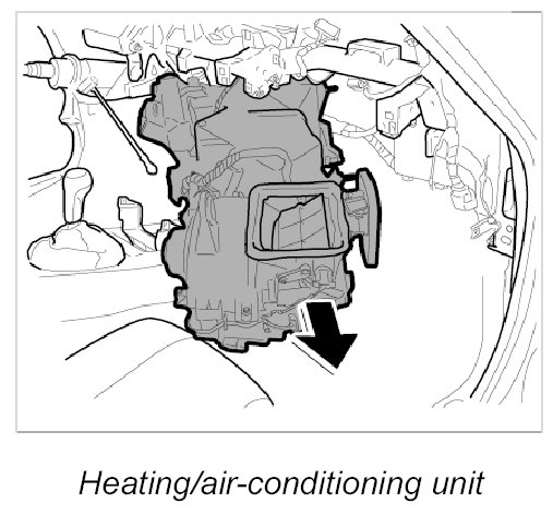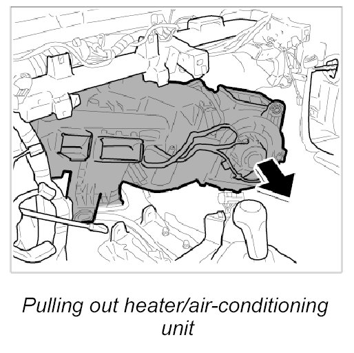 19. Remove heater/air-conditioning unit from passenger compartment via passenger's door.