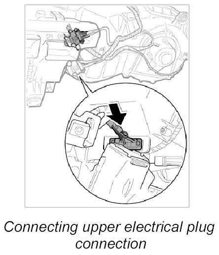 5. Connect upper electric plug connection at heater/air-conditioning unit until it is felt to engage.
