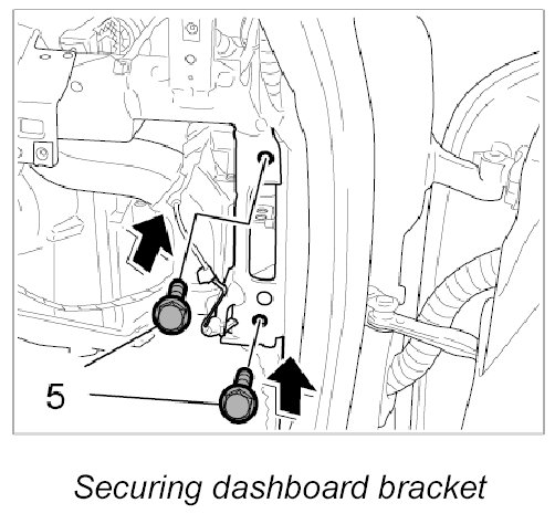 12. Screw down dashboard bracket with the two fastening screws -5-. Tightening torque: 23 Nm (17 ftlb.)