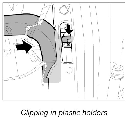 13. Clip in the plastic holders for the electric main wire harness to the dashboard bracket.