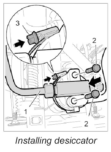 Installing desiccator (fluid tank)