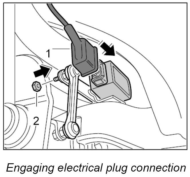 INFORMATION: If the angle sensor has been replaced, the front end control unit must be calibrated; afterwards the headlight setting must be checked and adjusted if necessary.
