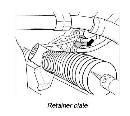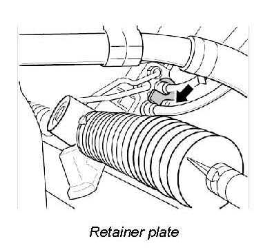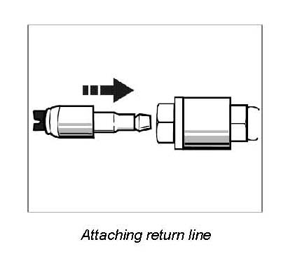 1. Insert new return line in vehicle. Do not close line bracket yet near the connection point for the rear sill area on the left.