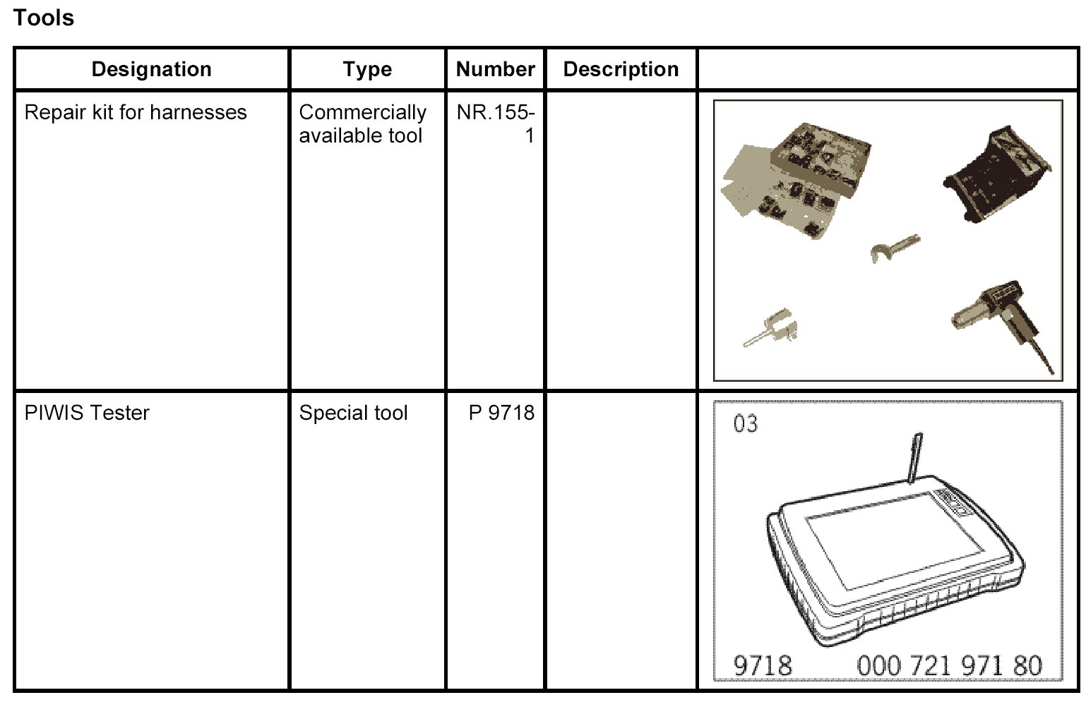 - For repairing wire harnesses, the wire harnesses listed in step 1 are only offered as complete units, without exchanging individual connectors.