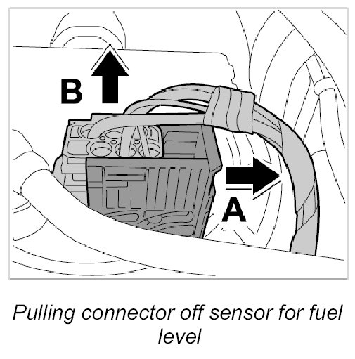 4.1. Release connector completely on fuel level sensor -arrow A- and pull it off -arrow B-.