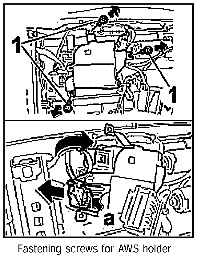 2. Position AWS holder on the seat bracket and screw it down using the three fastening screws -1-.