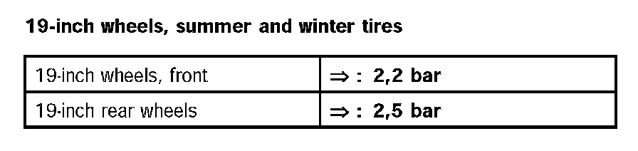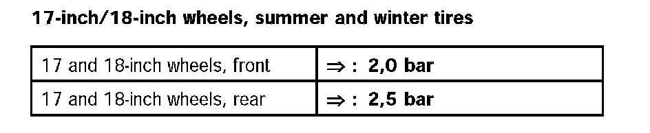Tyre pressure for cold tyres (approximately 20°C) - all Boxster and Cayman models