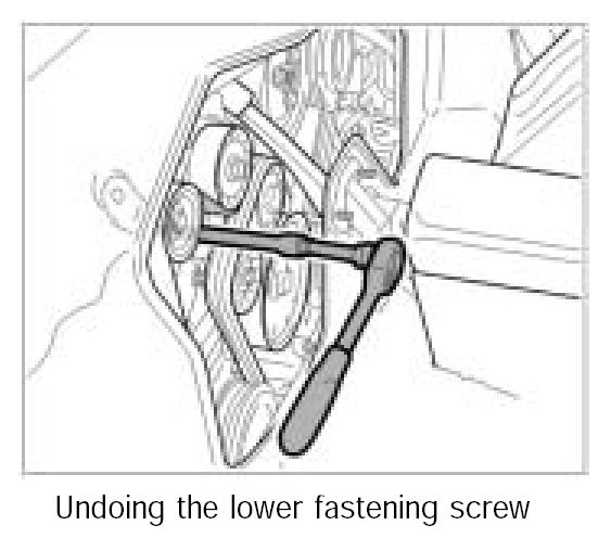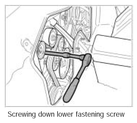 3. Unscrew lower fastening screw -4- through the rear wall cover opening using a ratchet spanner and an extra long extension.