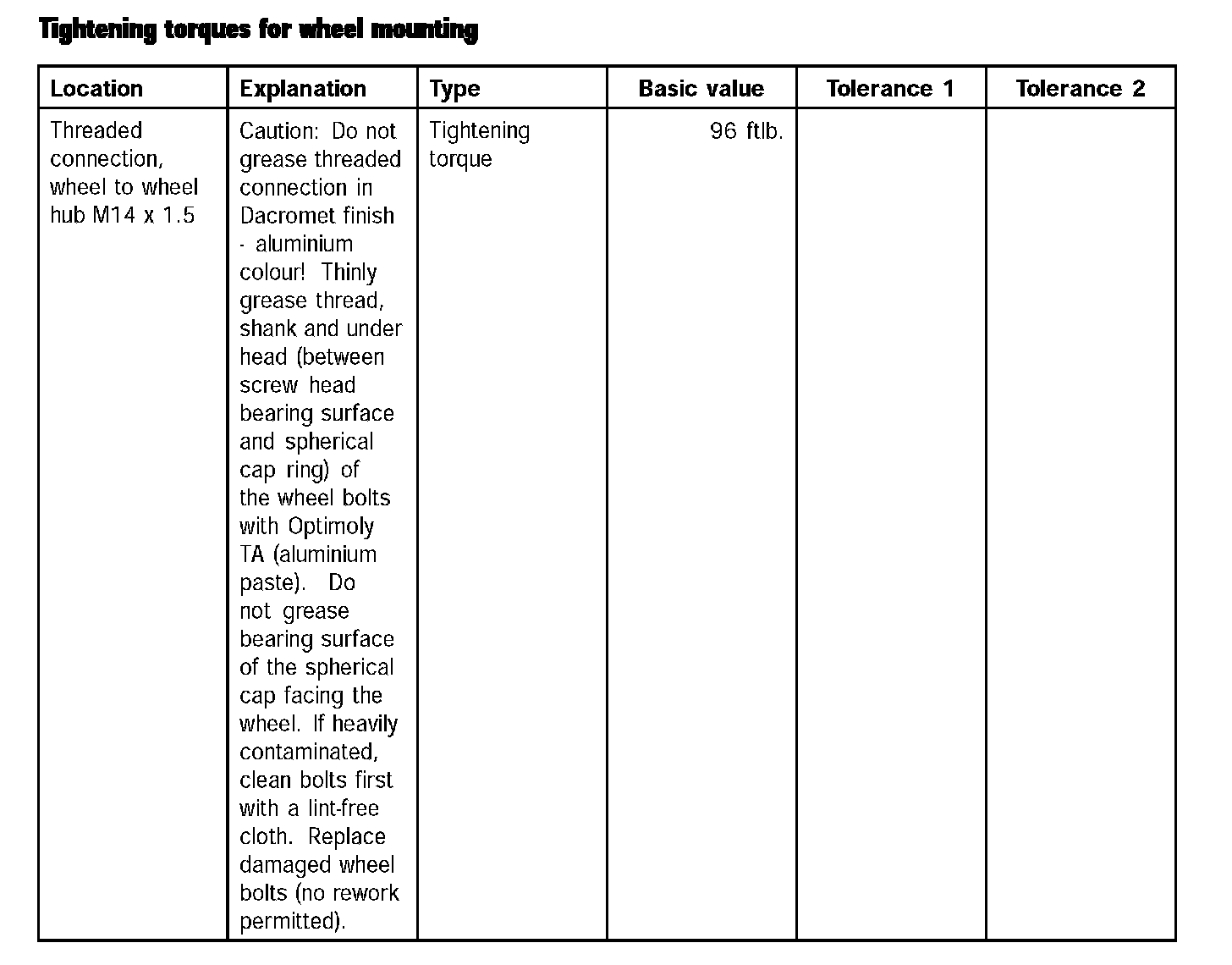 Tightening torques for wheel carrier (Part 1):