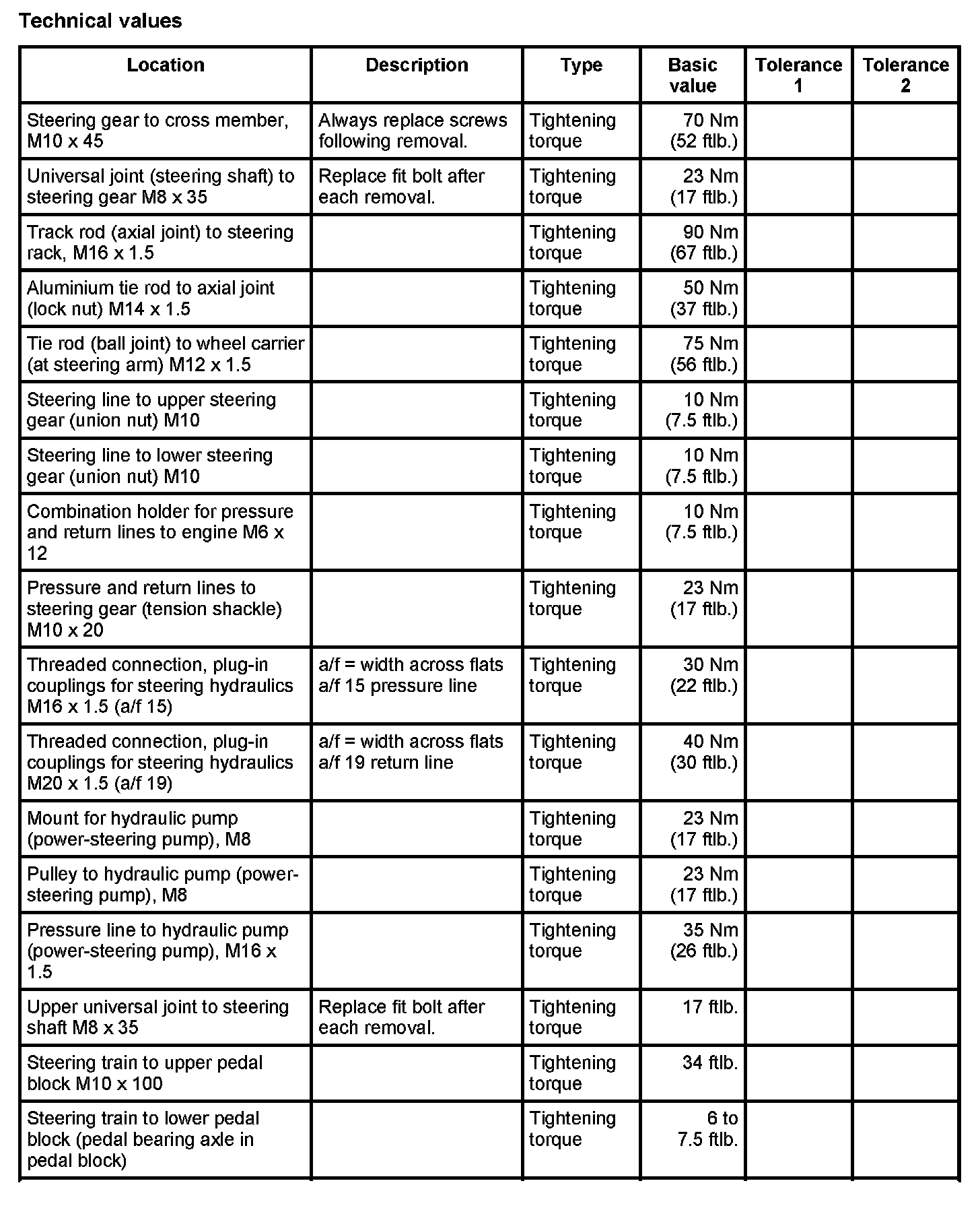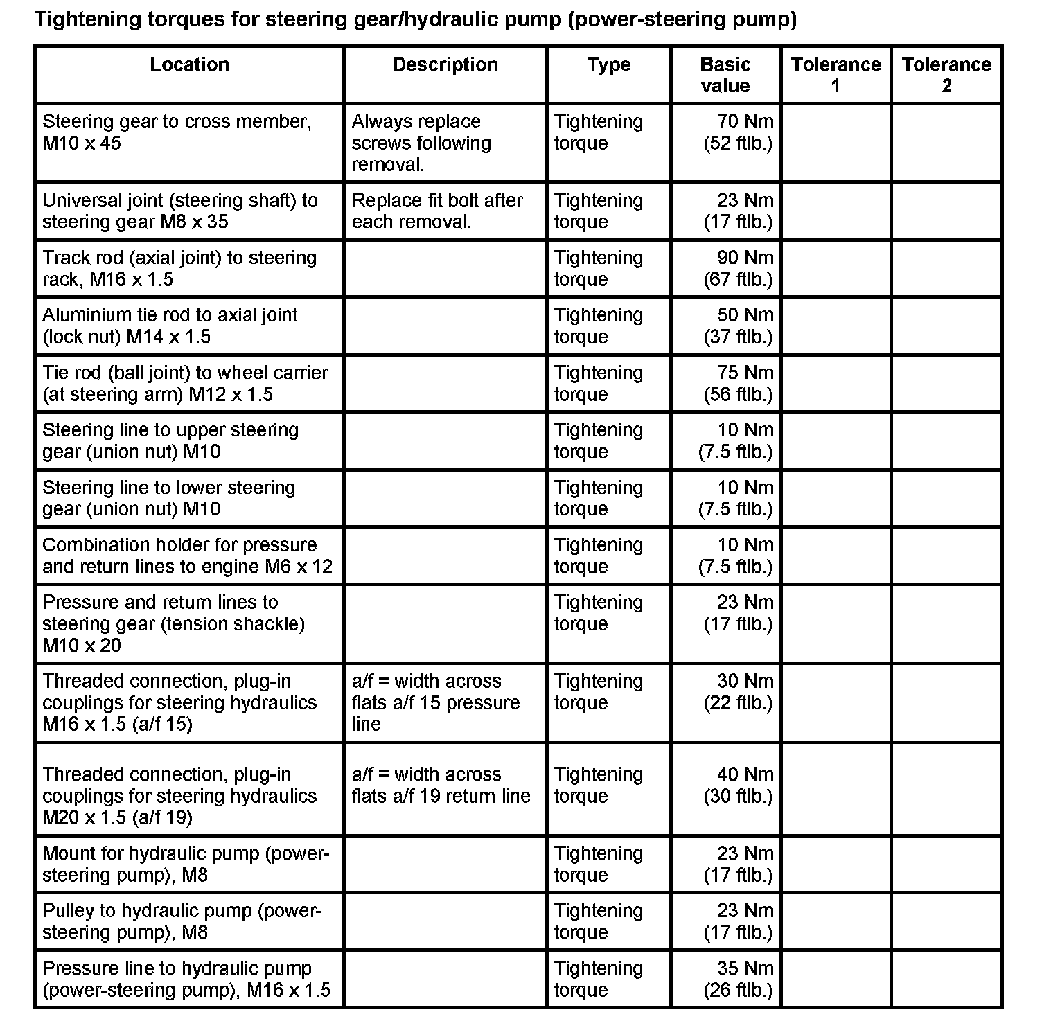 WM 4800TW Tightening torques for
