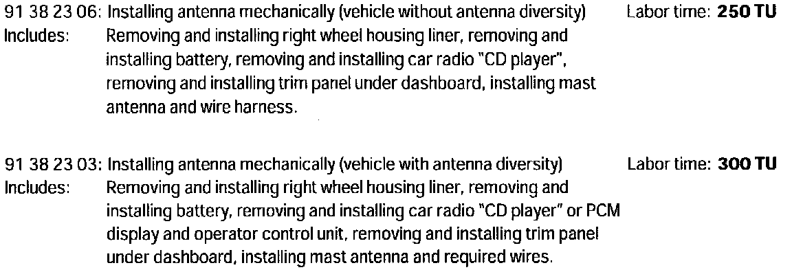 For improved AM reception, a mast antenna can be retrofitted on the right fender of the above-mentioned vehicle. On vehicles with antenna diversity, the right antenna amplifier is omitted.