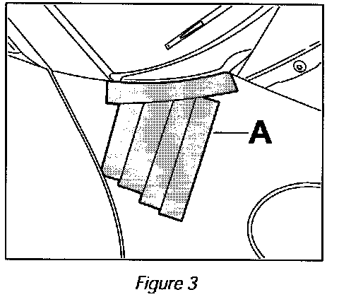 The middle point of Figure 18 -B- and the auxiliary line for Figure 18 -A- on the template must line up with the point of intersection of Figure 4 -B- and the auxiliary line for Figure 4 -A- on the adhesive tape, Figure 4.