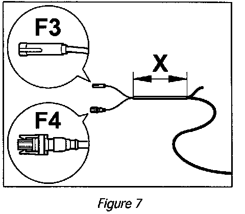 3.2 Join electric wire --> Figure 7 -F3- and antenna lead --> Figure 7 -F4- together with electrical tape in area "X", starting approx. 50 mm behind the connectors.