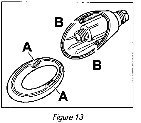 The locating pins, Figure 13 -A- on the seal must engage in the holes, Figure 13 -B- of the antenna base cover.