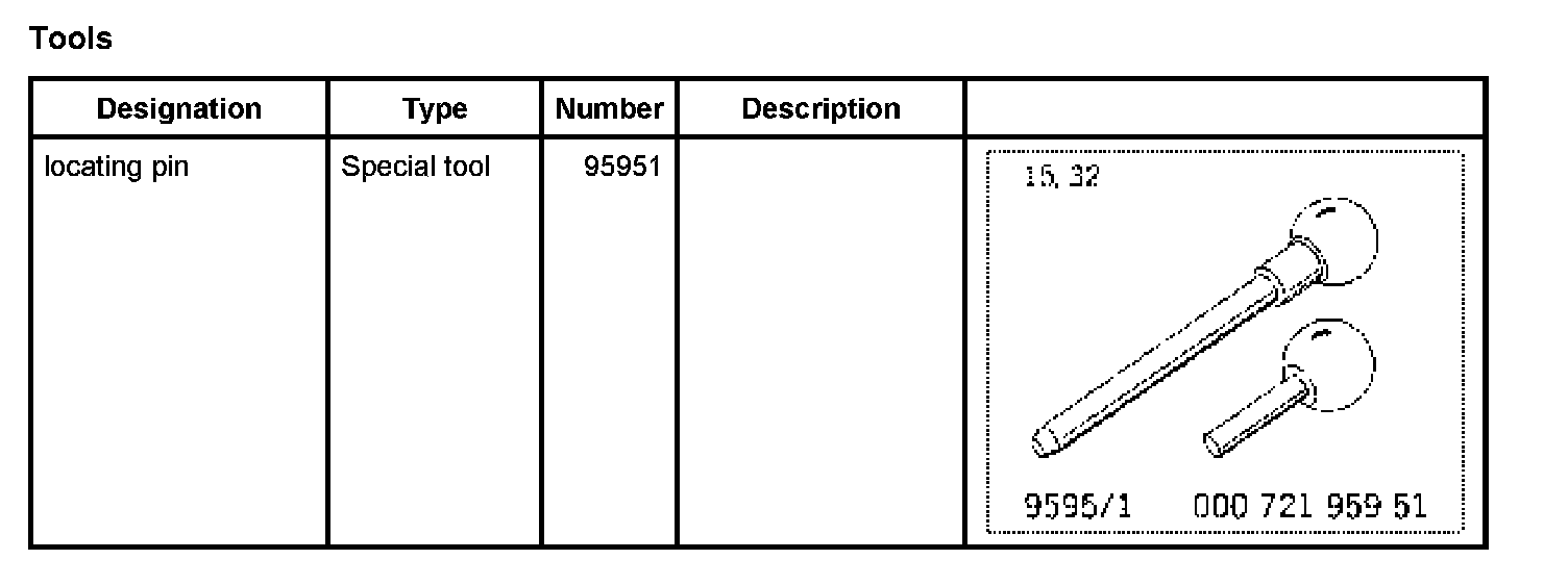 1. Pull out locating pin 95951 (long) from transmission housing.