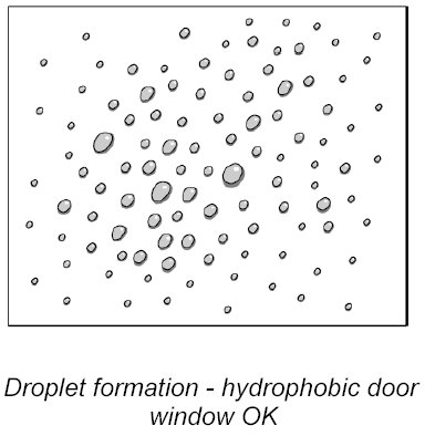 - The need for rework (applying new coating) can be examined by checking the drops of water on the windows.