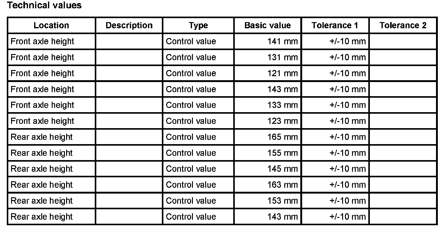 Adjustment values for suspension alignment
