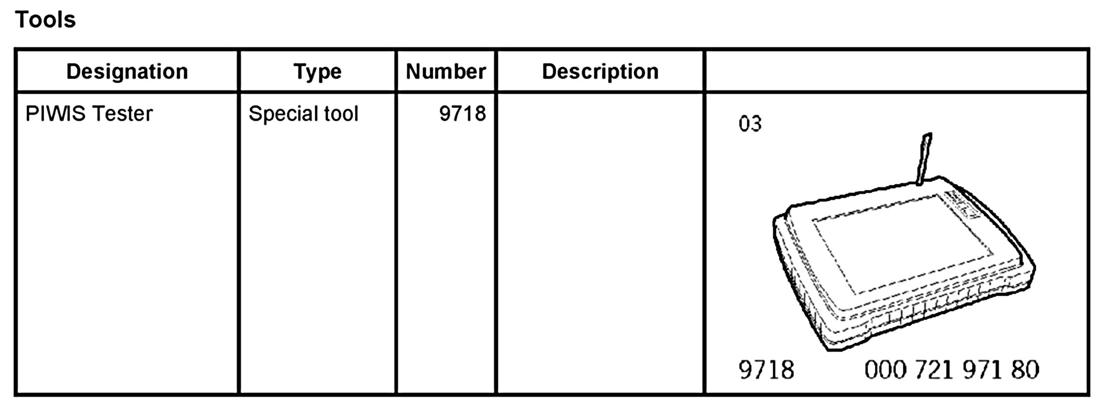 - The PIWIS Tester 9718 instructions take precedence since the description may be different. This may be due to more recent software versions.