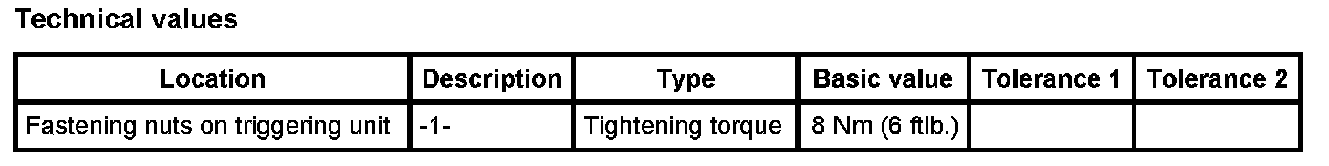1. Position triggering unit, move both ground straps -2- on the left fastening bolts and screw down with the three fastening nuts -1-. Tightening torque: 8 Nm (6 ftlb.)