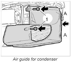 2. Pull the air guide forward and disengage it at the condenser -A-