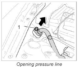 2. Unscrew fastening screw -1- for refrigerant line -C- and open the pressure line.