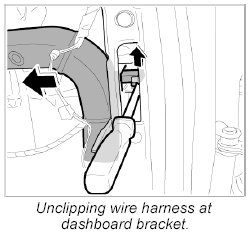 8. Unclip holder for electric harness with a screwdriver from right side of dashboard bracket.