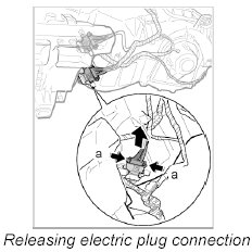 5. Connect upper electric plug connection at heater/air-conditioning unit until it is felt to engage.