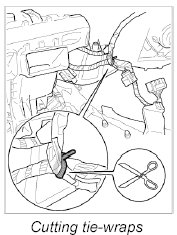 16. Cut tie-wraps of electric line (vehicle wire harness to heater/air-conditioning unit wire harness) with side cutters. Remove vehicle wire harness.