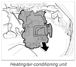 19. Remove heater/air-conditioning unit from passenger compartment via passenger's door.