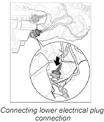 6. Connect upper electric plug connection at heater/air-conditioning unit until it is felt to engage.