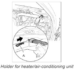 10. Pull out cotter pin -A- for holder of the heater/air-conditioning unit.