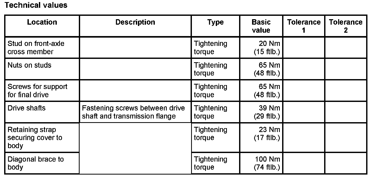 - Tightening torque: 100 Nm (74 ftlb.)