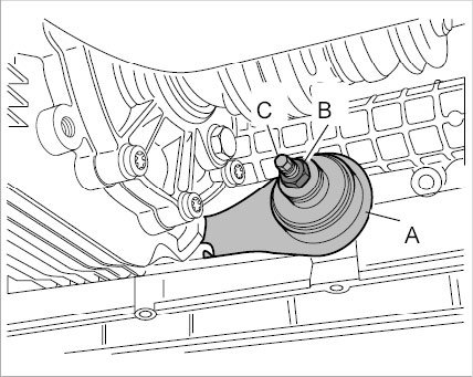 2.1. Screw studs -C- through the transmission support -A- and into the front-axle cross member.