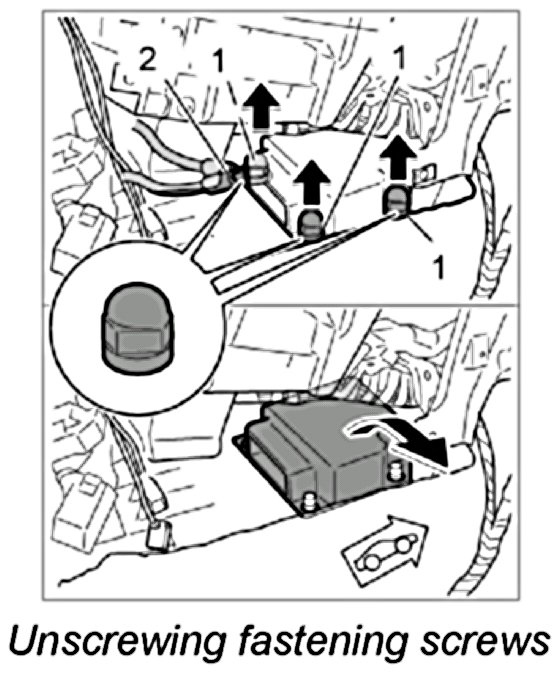 5. If installed, remove control unit for tilt sensor.