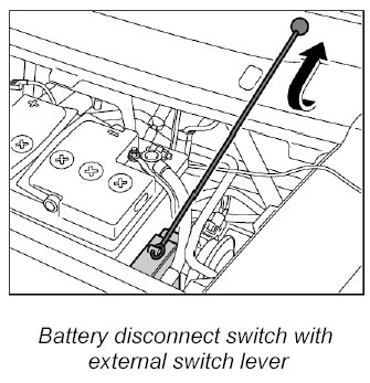 The battery disconnect switch, which is supplied via the positive terminal, is closed manually using the external switch lever and locked electromagnetically. The luggage compartment lid must not be open when doing this.