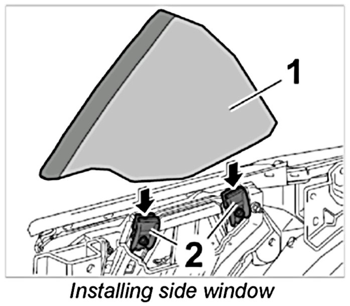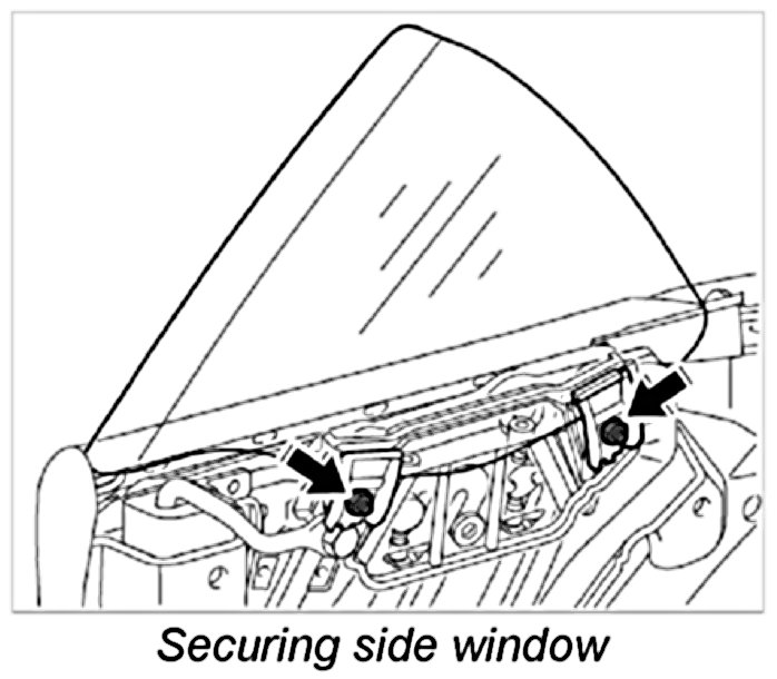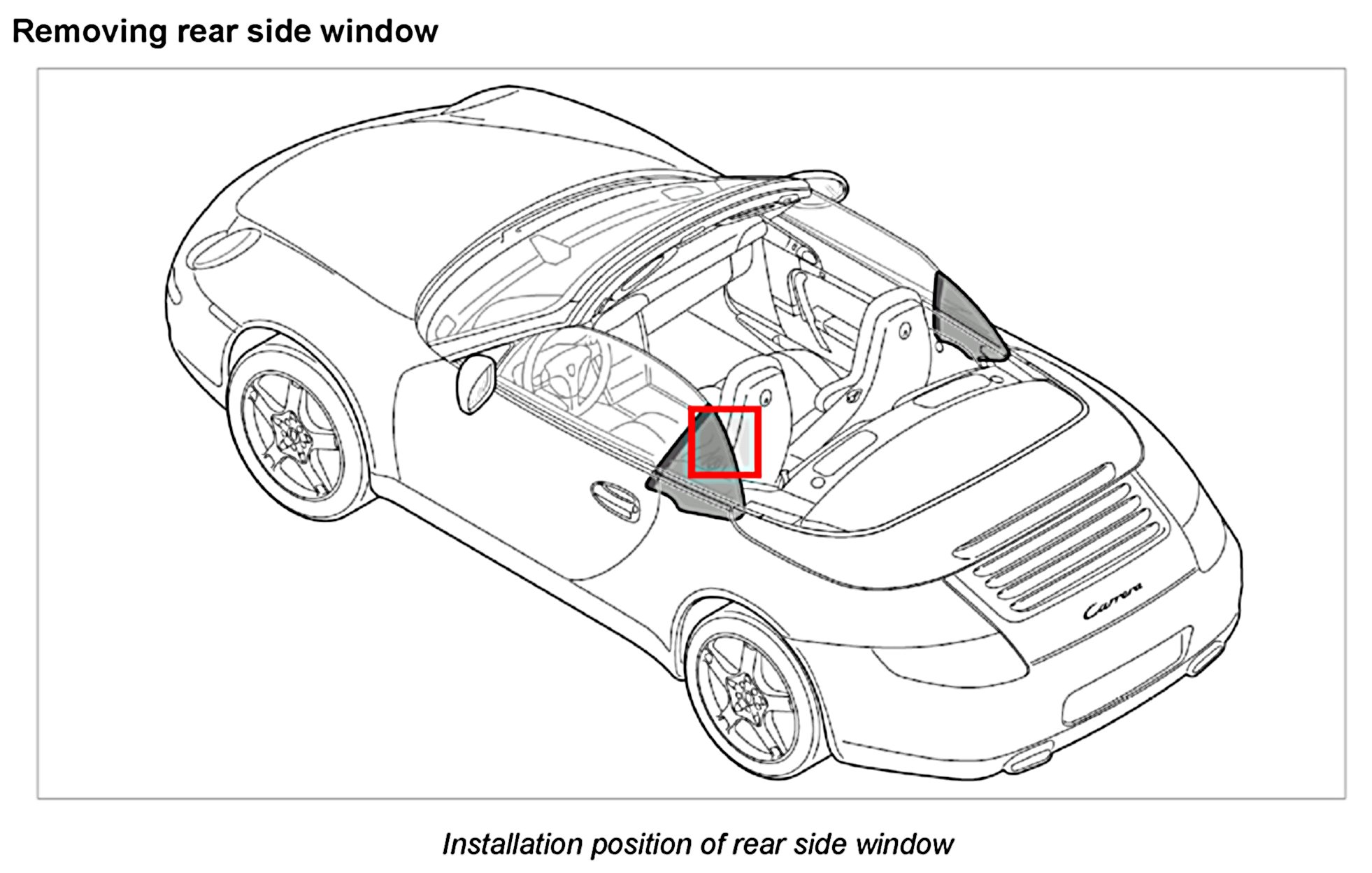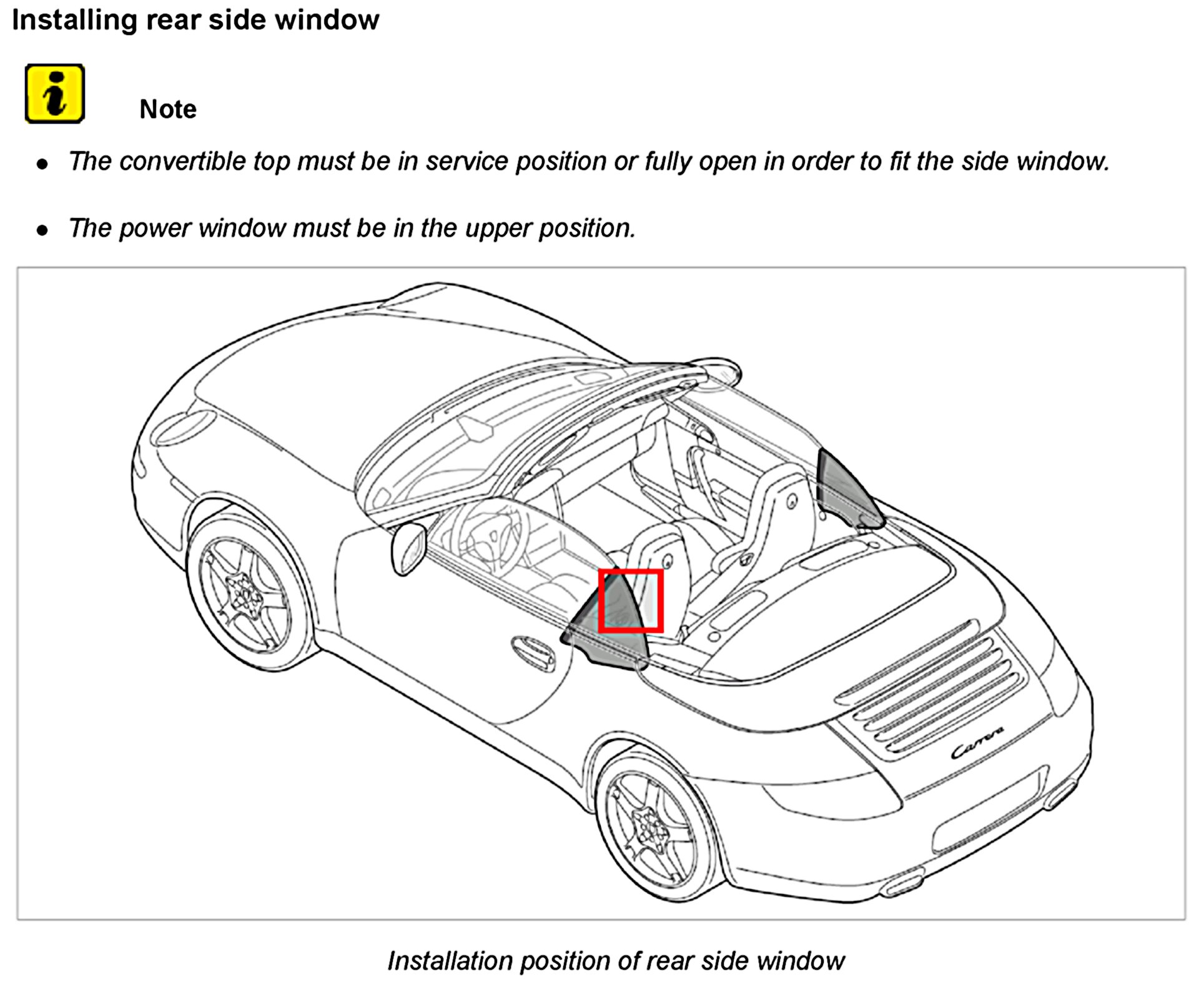 - The convertible top must be in service position or fully open in order to fit the side window.