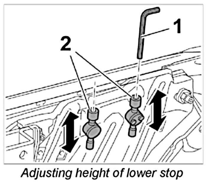 - It is possible to adjust the height of both lower stops, but these should only be adjusted synchronously.
