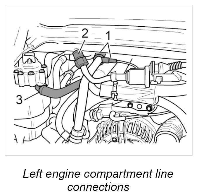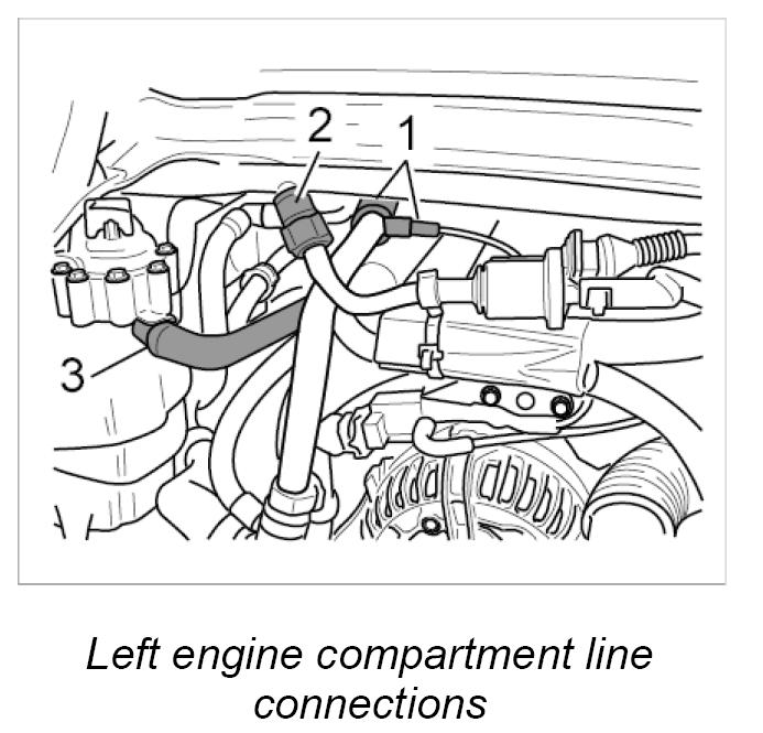 12. Fit line connections in left of engine compartment.