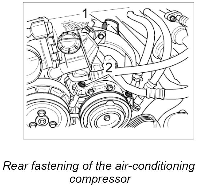 - After removal, place the air-conditioning compressor on a suitable protective support (e.g. foam, neoprene, etc.).