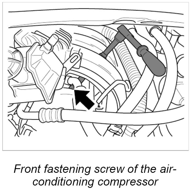 2. Detach air-conditioning compressor without disconnecting the air-conditioning lines.